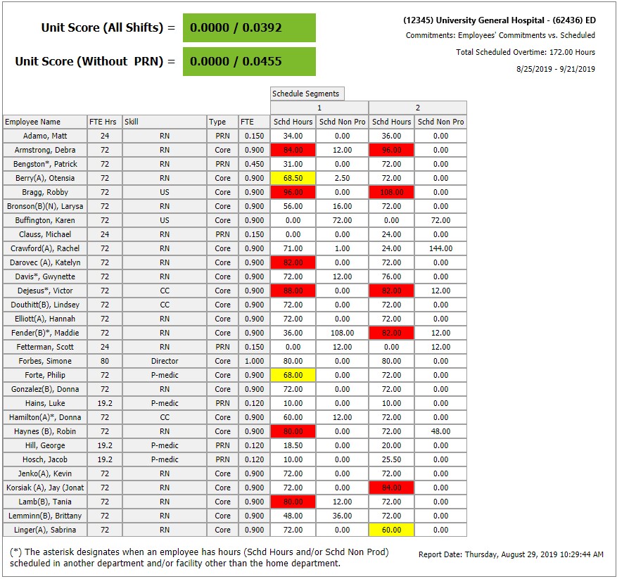 The asterisk indicates when an employee has hours (Schd Hours and/or Schd Non Prod) scheduled in a department and/or facility other than their home department. |