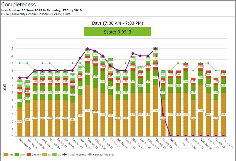 The Completeness metric indicates how well the assignments within a schedule meet staffing requirements as defined by the Department Staffing Matrix and Forecast Census for